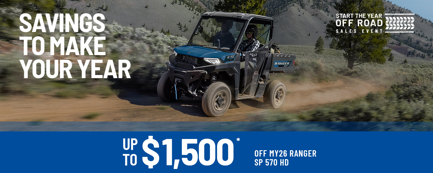 Now’s the time to save $1,500 with the Start the Year Off Road Sales Event on MY26 Ranger SP 570 HD.